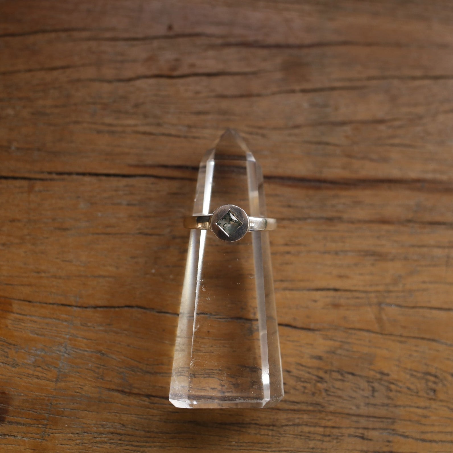 Handcrafted in your choice of solid sterling silver or luxurious gold vermeil, the ring features a rhombus-cut Moss Agate—set in a kite-like orientation that highlights its organic inclusions and natural artistry.