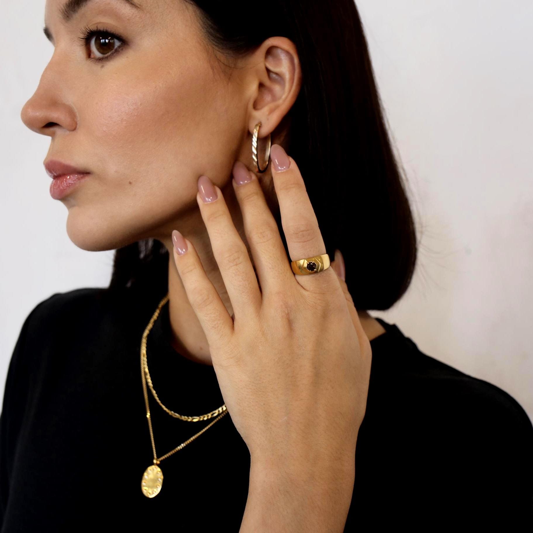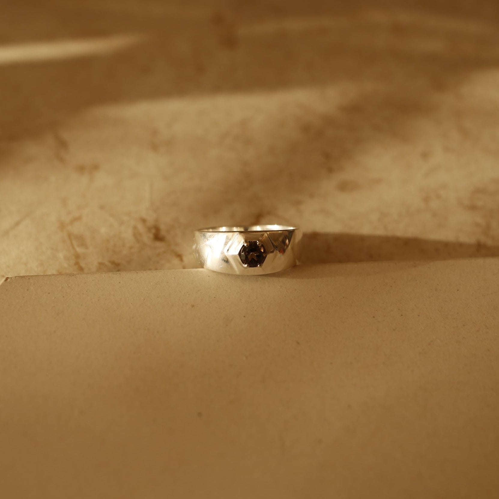 The Alma Ring reinterprets the classic signet ring, which was historically worn as a symbol of identity and distinction. With clean, minimalist lines and a bold presence, it offers a contemporary take on a timeless tradition—perfect for those who appreciate understated sophistication with a modern edge.Ethically Sourced Natural Smoky Quartz